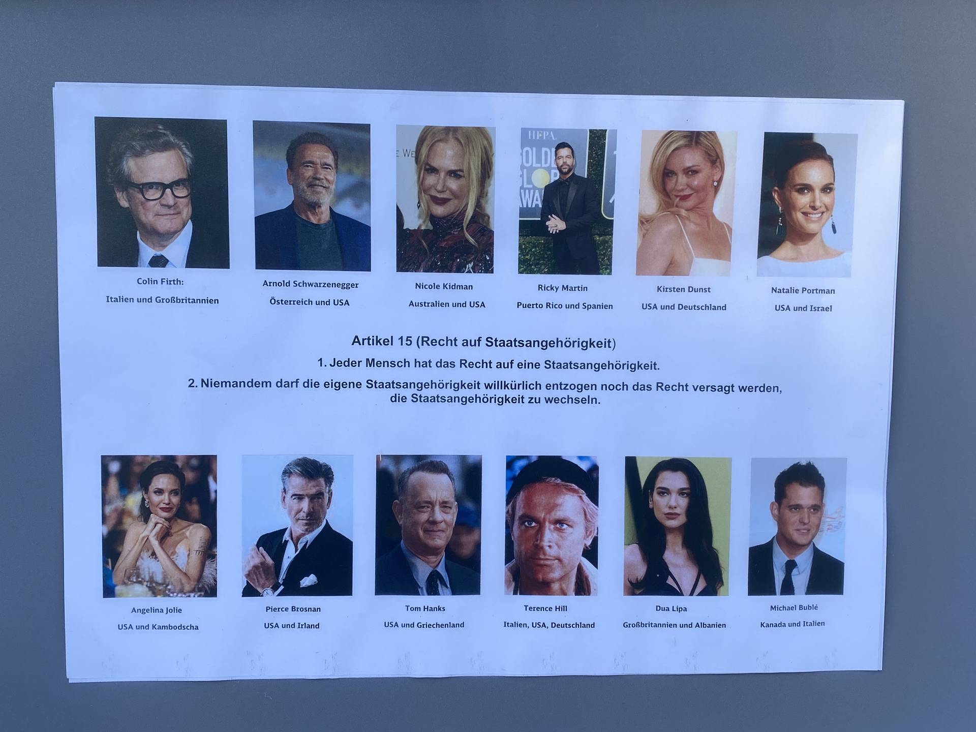 Pfarrei Adventskalender 15. Dezember 2024 15. Dezember 2024Menschenrechte Art. 15.2 Niemandem darf die eigene Staatsangehörigkeit willkürlich entzogen noch das Recht versagt werden, die Staatsangehörigkeit zu wechseln.