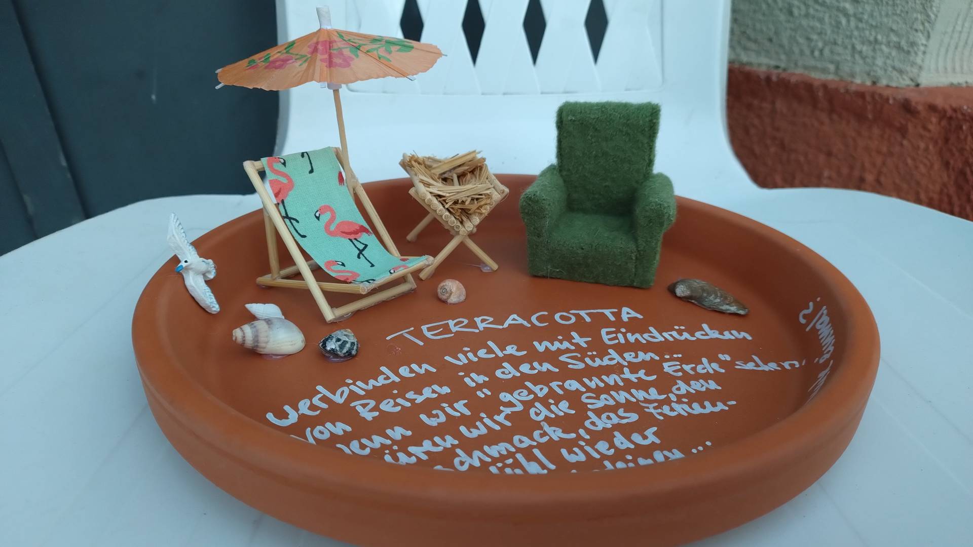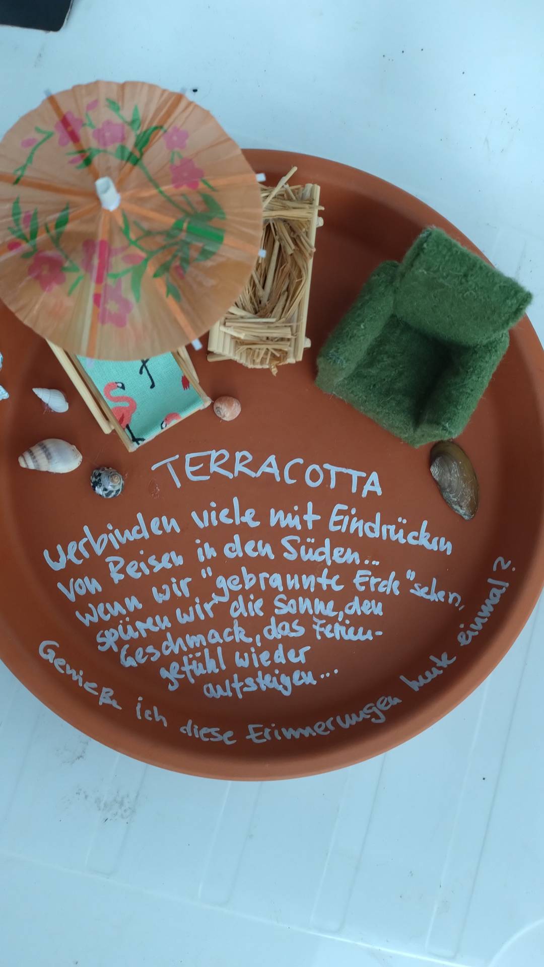 Pfarrei Adventskalender 19. Dezember 2025 19. Dezember 2025T E R R A C O T T A T E R R A C O T T A verbinden viele mit Eindrücken von Reisen in den Süden. Wenn wir die „gebrannte Erde“ sehen, spüren wir die Sonne, den Geschmack, das Feriengefühl wieder aufsteigen. Genieße ich diese Erinnerungen heute einmal bewusst?