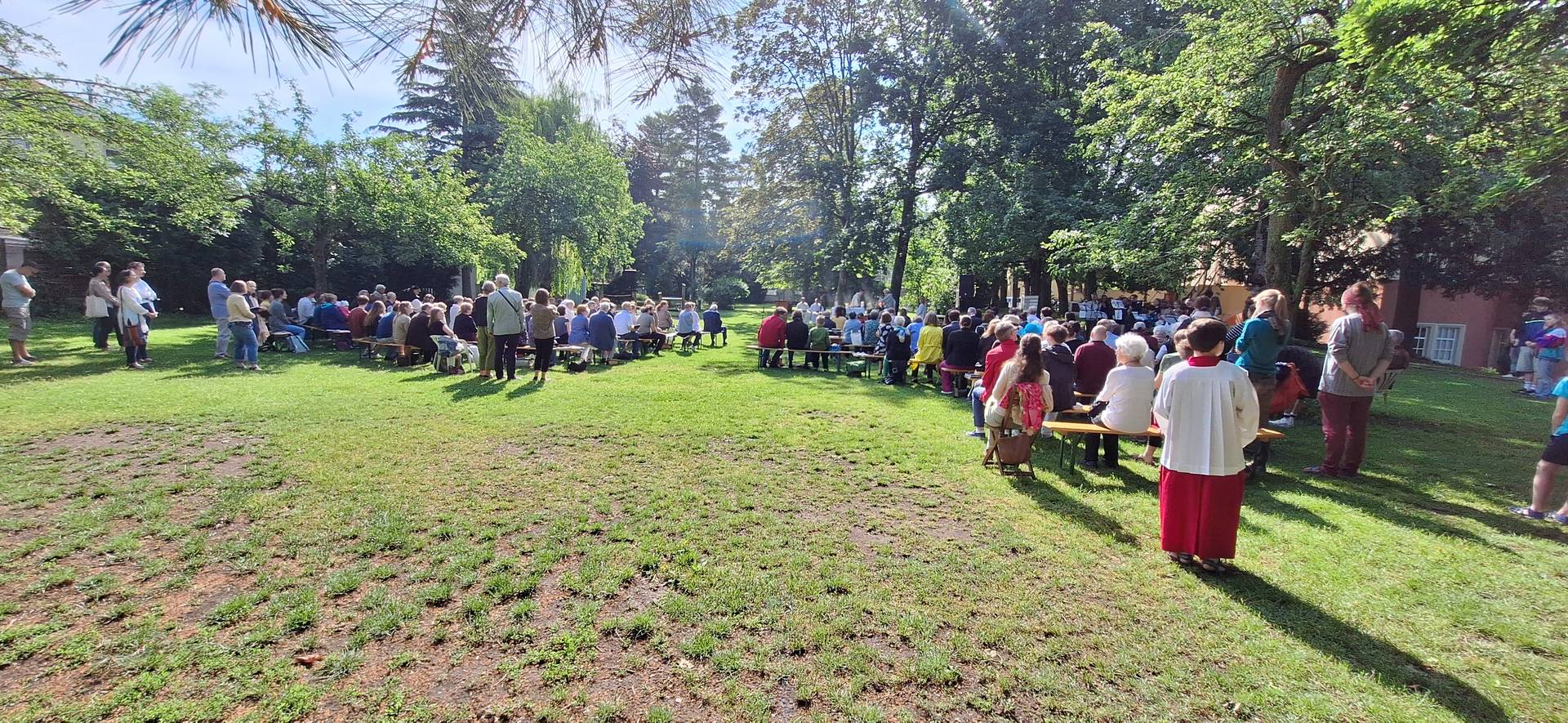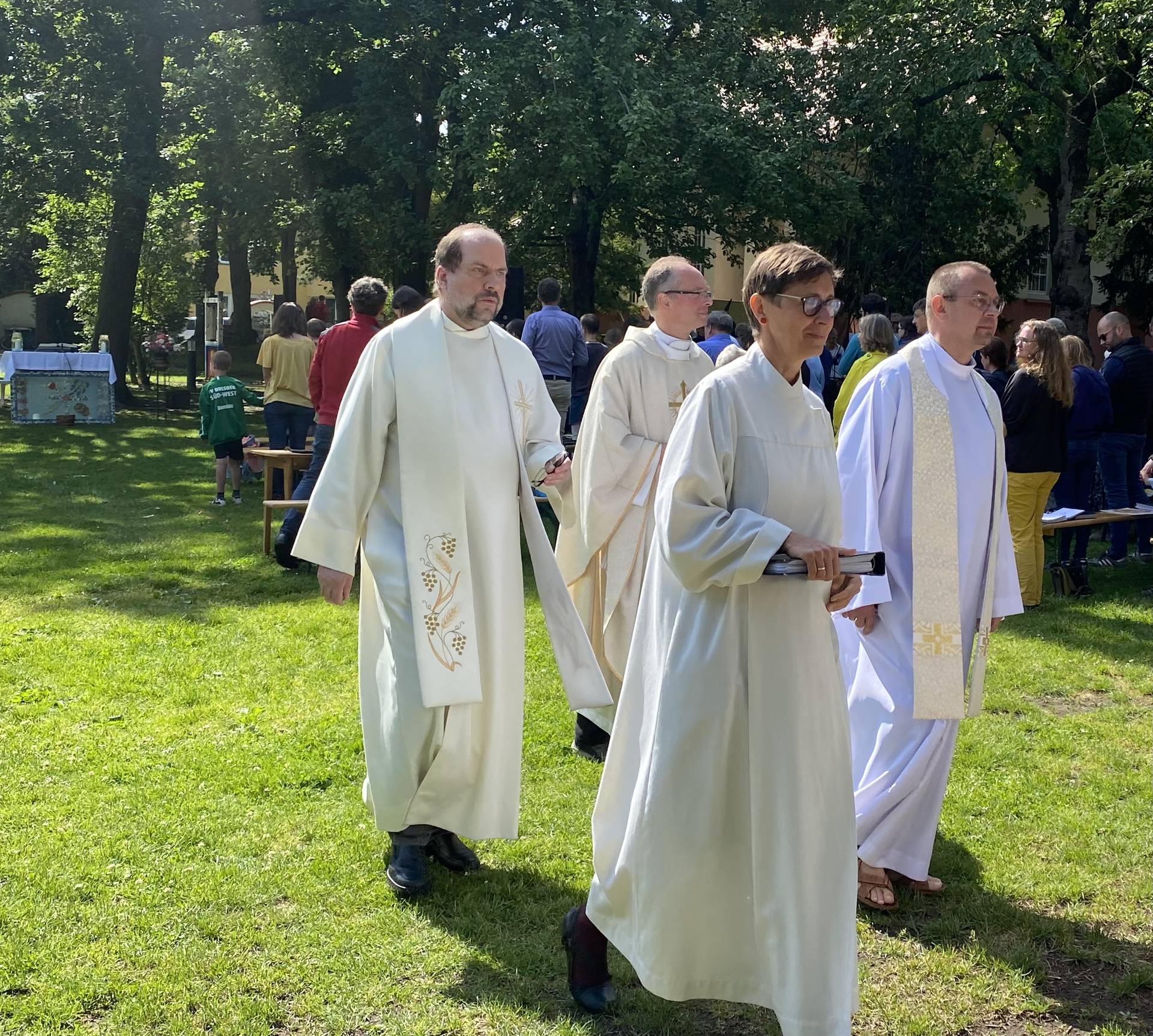 Den Gottesdienst gestalteten Instrumentalisten, Band und Chöre aus allen Altersklassen mit. Pfarrer Kuhnigk verwies in seiner Predigt mit Blick auf das Tagesevangelium auf Jesu Zusage: "Ich bin bei euch alle Tage bis zum Ende der Welt." Am Ende der Heiligen Messe, erhielt Jadwiga Günther einen besonderen Segen für ihr kommendes Tun und Wirken. Zur Freude von Jadwiga und vielen GottesdienstbesucherInnen war auch Sławomir Rakus zu Gast und feierte den Gottesdienst mit.