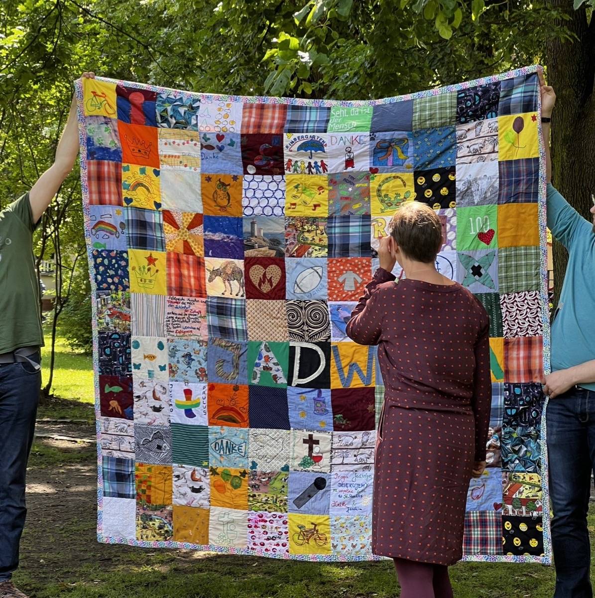 Jadwiga Günther hat über lange Jahre durch Höhen und Tiefen die Geschicke der Pfarrei und insbesondere der Gemeinde Sankt Paulus ganz wesentlich mit Herzblut und außergewöhnlichem Engagement gestaltet und gelenkt. So konnten alle lautstark und mit einer Träne im Auge in den Refrain zur Überreichung einer selbst gequilteten Decke einstimmen: