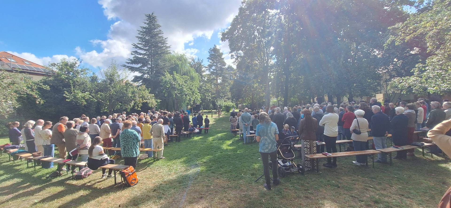Über 250 Mitglieder unserer Pfarrei feierten am 24.08.25 den Gedenktag der Seligen Märtyrer vom Münchner Platz mit einem Gottesdienst in St. Paulus und anschließender Begegnung und Mittagessen im Pfarrgarten. Musikalisch gestaltet wurde die Messfeier vom Bläserensemble. Diakon Peter Brinker übertrug in der Predigt Worte, Gedanken und Fragen heutiger politisch Gefangener und Verfolgter auf die polnischen Seligen und viele weitere Verfolgte der Nazi-Diktatur. Sie finden den Predigttext im nebenstehenden Dokument.