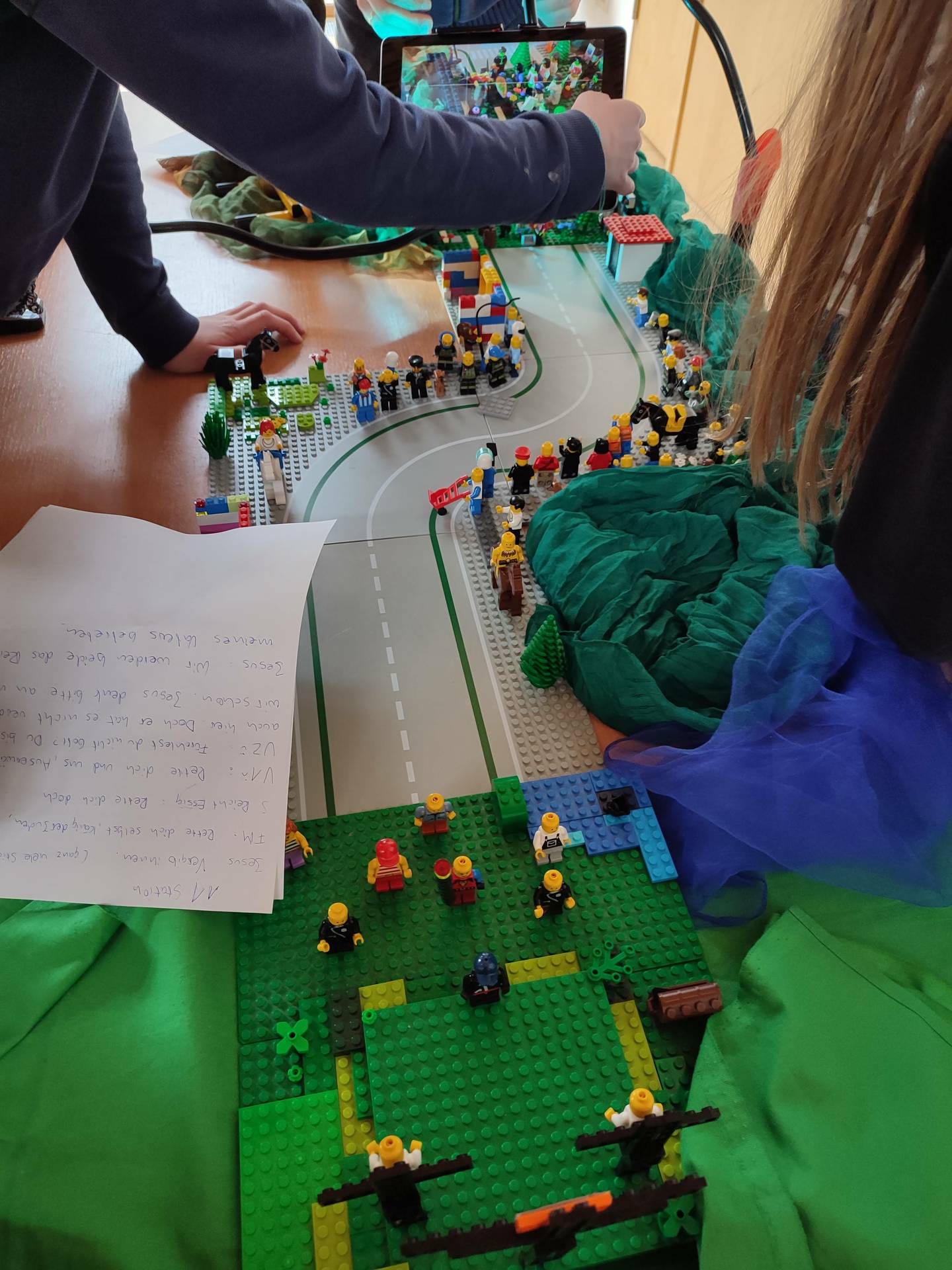 Aus einem riesigen Fundus mit Legosteinen und - figuren wurden die Stationen Jesu von der Verurteilung in Jerusalem bis zur Auferstehung gebaut und dargestellt.