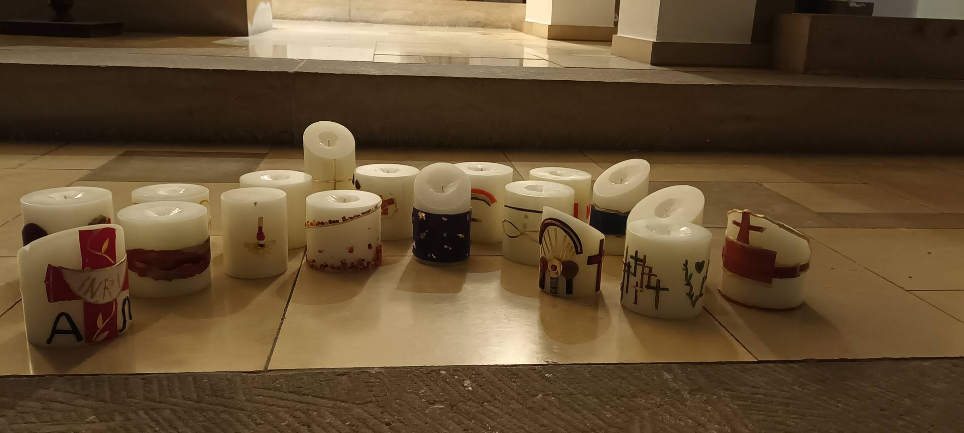 Mitnichten! Sie gehen in die plastische Chirurgie und werden verwandelt. In haushaltskompatible Stücke geschnitten haben sie durch die Minis unserer Gemeinde völlig neue künstlerische Akzente bekommen. Der Clou: auch das neue Design ist aufbereiteter Zierrat der österlichen Vorgänger. So sind nicht nur neue kleine Osterkerzen entstanden, sondern auch kirchenjahreszeitlich neutrale Motive.