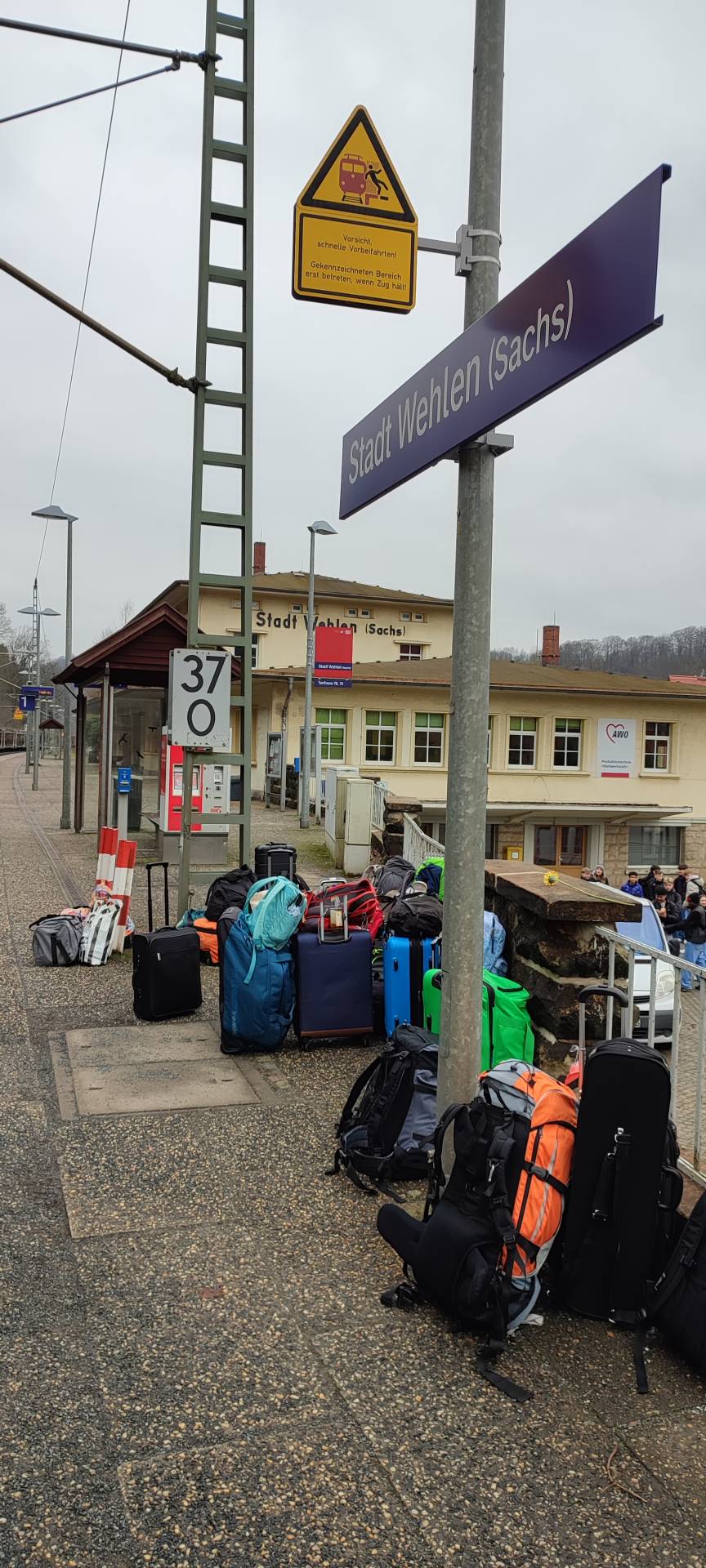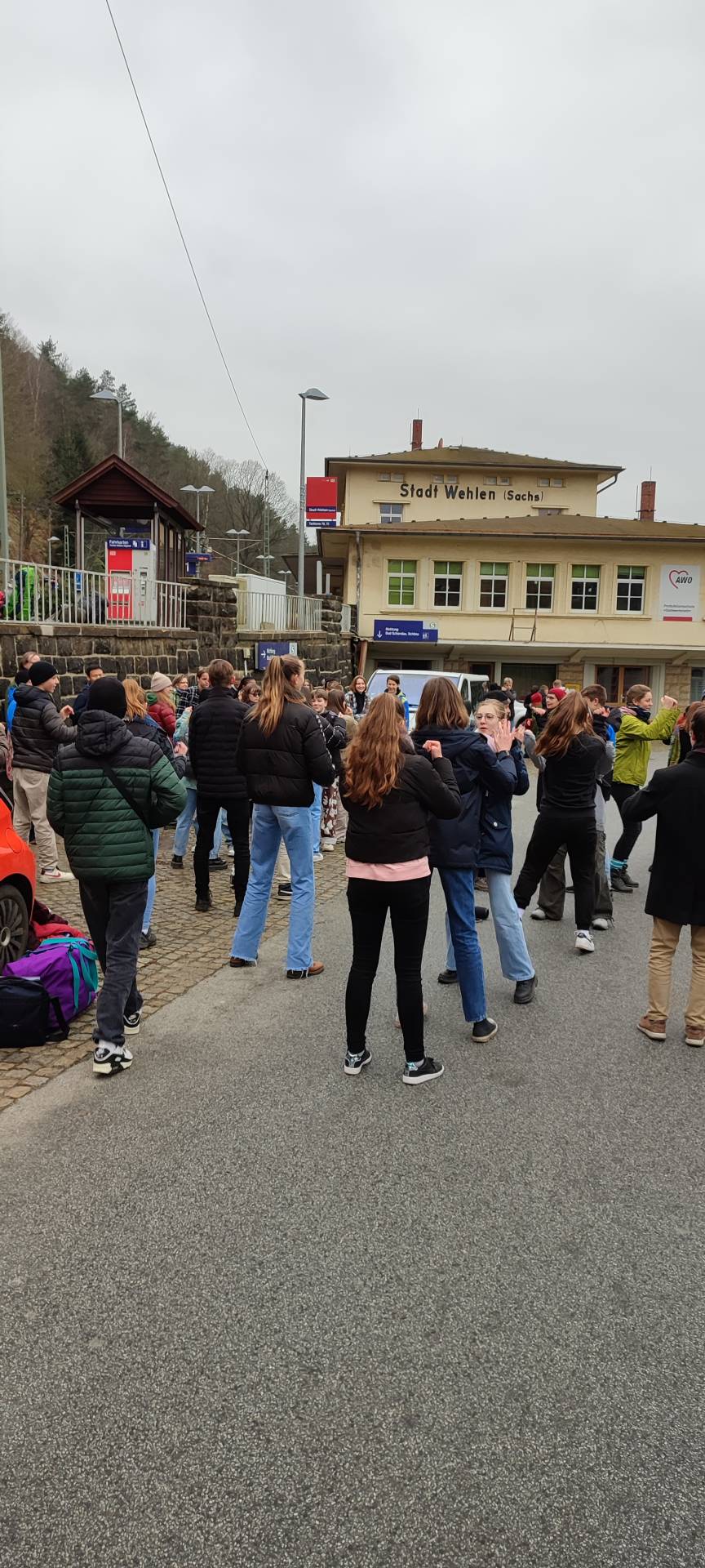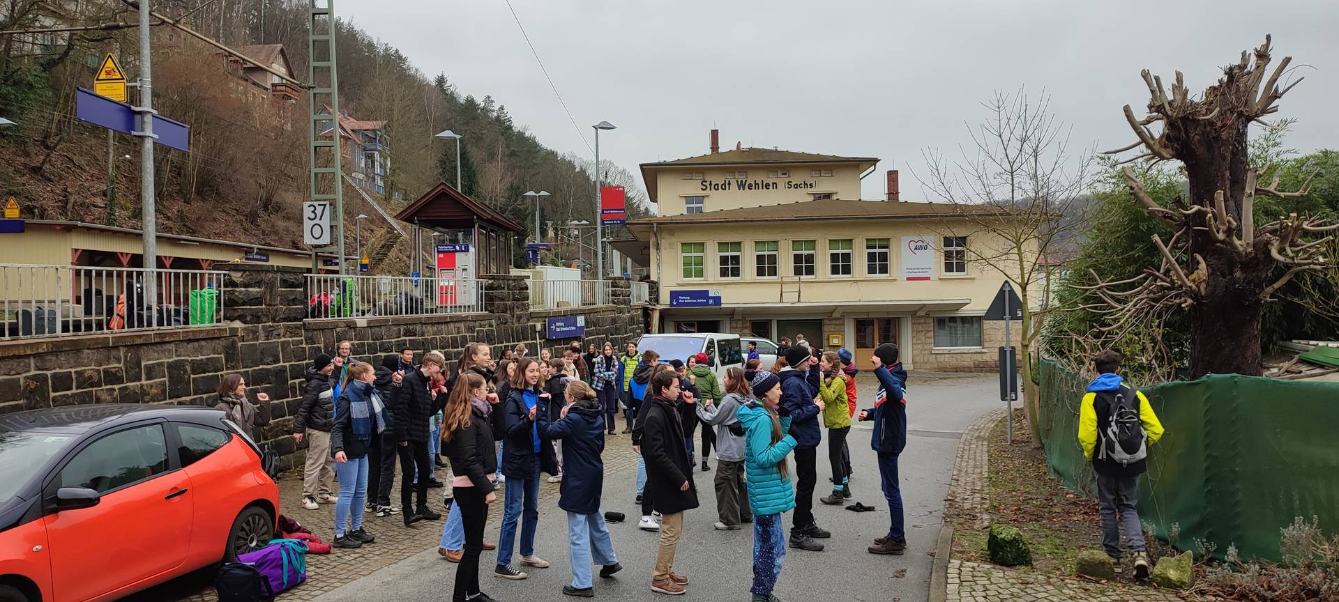 Zum Abschied am Bahnhof der Stadt Wehlen haben wir die 33 Jugendlichen aus Strehlen und Plauen begrüßt - und ihnen gute Wünsche und ein bisschen Motivation zum gemeinsamen Tanzen weitergegeben!