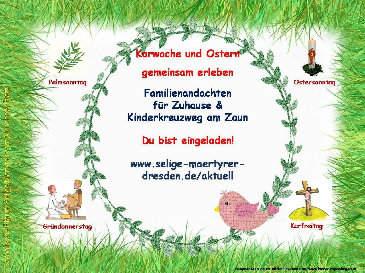 wir wollen die Karwoche mit Euch gemeinsam feiern, diesmal wieder im Online-Format.