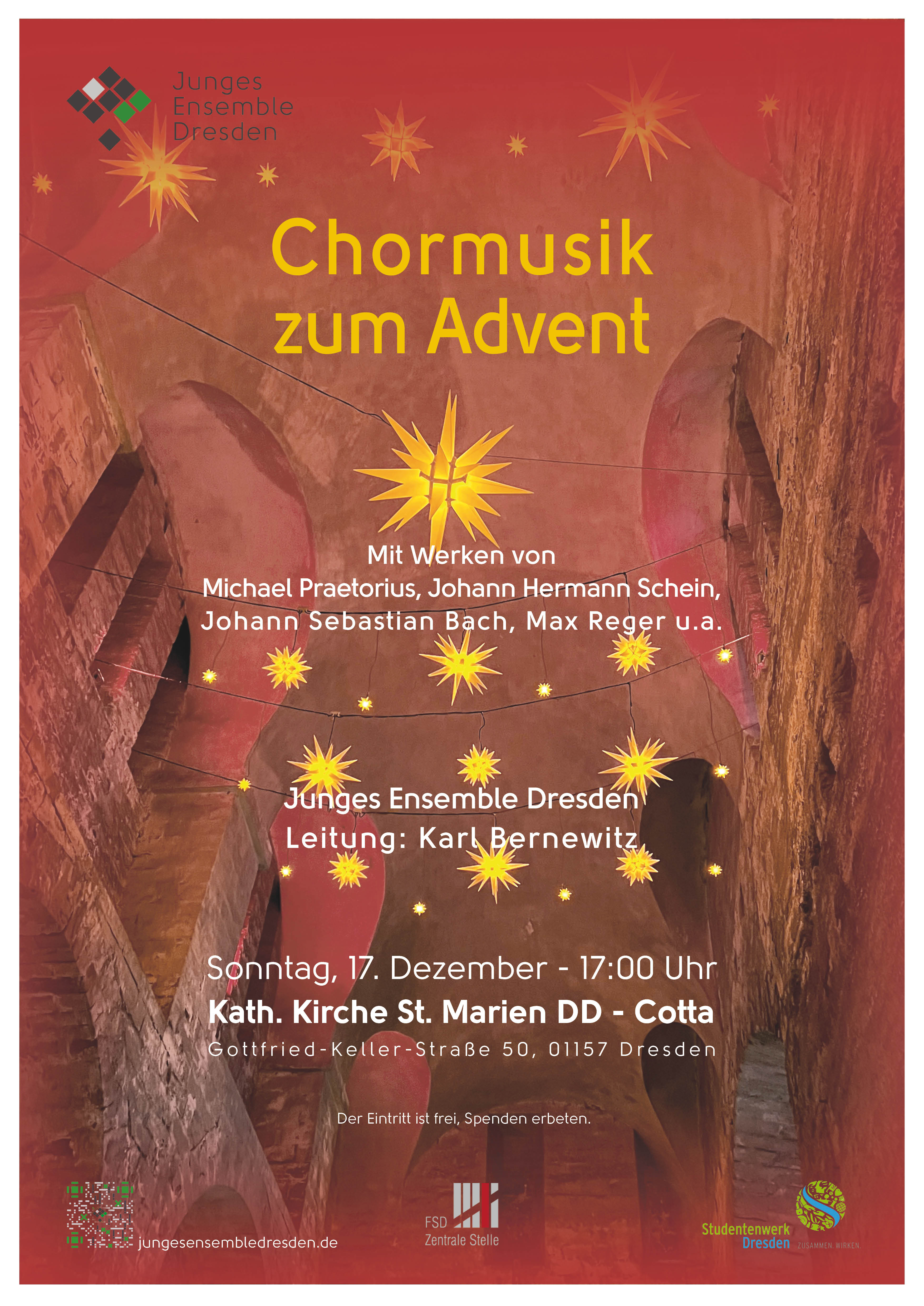 Bereits im letzten Jahr sehr bejubelt, daher mit neuem Programm gerne wieder bei uns zu Gast, das Junge Ensemble Dresden (JED) singt unter der Leitung von Karl Bernewitz.