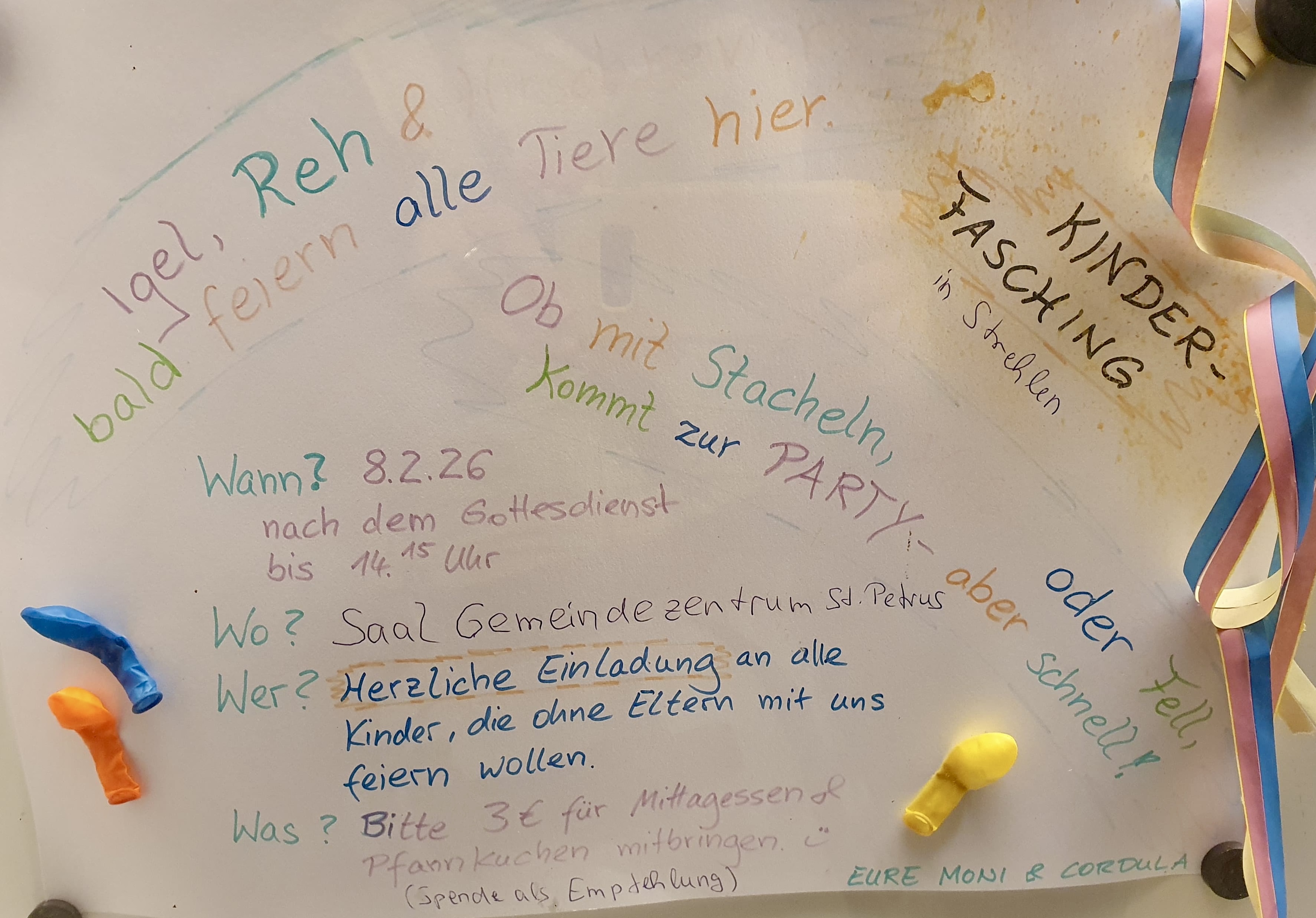 Herzliche Einladung an alle Kinder, die ohne Eltern mit uns feiern wollen.