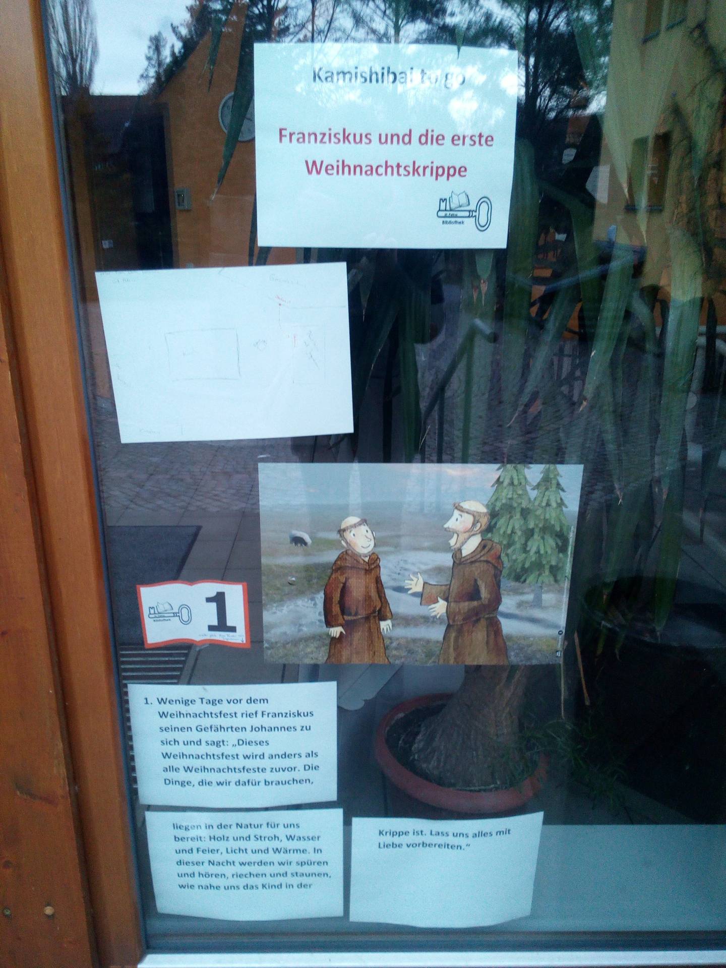 Die Gemeindebibliothek von St.Petrus möchte auf die Kamischibai-Aktion hinweisen. Kamishibai ist ein Erzähltheater (kommt aus Japan und bedeutet wörtlich übersetzt "Papiertheater") bei dem es 12 nummerierte Stationen gibt. Diese sind auf 12 Fenstern von Gebäuden im Außengelände von St. Petrus verteilt. Familien sind herzlich eingeladen den gezeigten Erzählungen zu folgen.