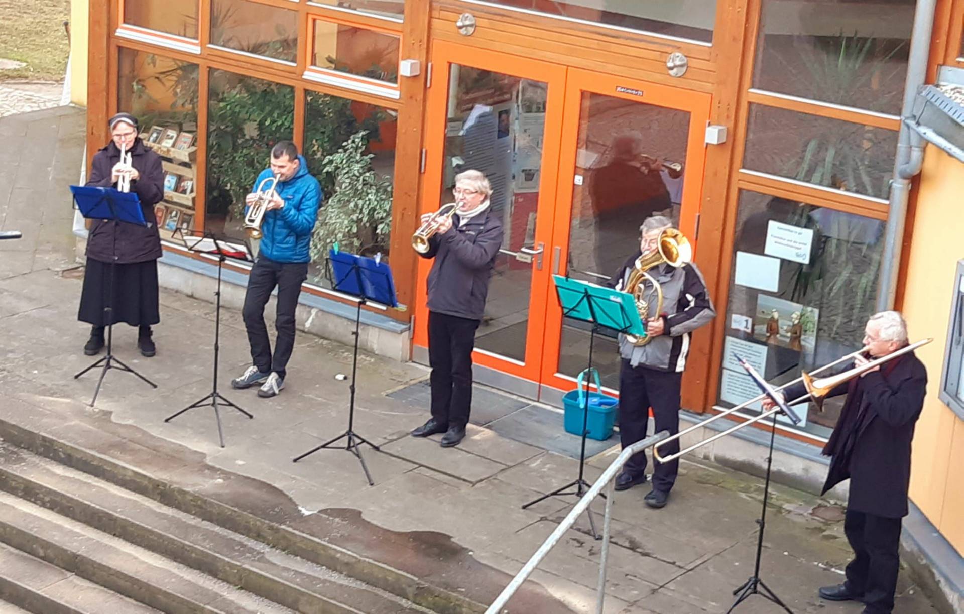 Zu Neujahr, am Palmsonntag, zum Patronatsfest, zu Sankt Martin, im Advent ... spielen wir dann Choräle zum Mitsingen für die Gemeinde und kleine Bläserstücke